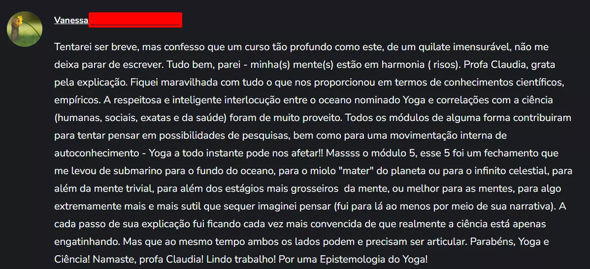 Claudia Poletto é doutora em História das Ciências, das Técnicas e Epistemologia pela Universidade Federal do Rio de Janeiro (UFRJ) e atua como pesquisadora independente na interface entre Yoga e ciência. É professora de Yoga desde 2005, com longa experiência em ensino e investigação crítica das relações entre práticas tradicionais do Yoga e saberes científicos contemporâneos. O curso Online Yoga e Ciência: História, Conexões e Pesquisas foi elaborado a partir de sua pesquisa de doutorado, somando dois anos de estudo para estruturar conteúdos teóricos, históricos e epistemológicos que orientam a formação e o diálogo entre Yoga e metodologias acadêmicas.
