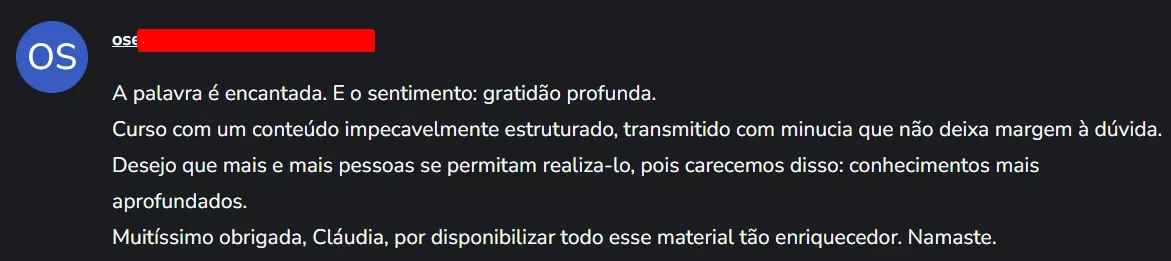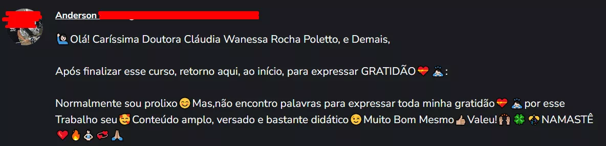 ➜ Suporte didático direto com a professora do curso para esclarecimento de dúvidas, e quando solicitado, revisão de projeto de pesquisa.